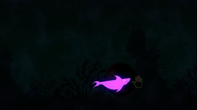 The three different walls for the installation were animated to create the atmosphere of being underwater. When the fish would get stuck in pollution a yellow hand would appear to shadow how to free the fish. In early animatics the hand was white and the fish wasn’t so vibrant but found these colors would clash to much with the rest of the ocean and would have to develop it for the person to understand this is what they were interacting with.